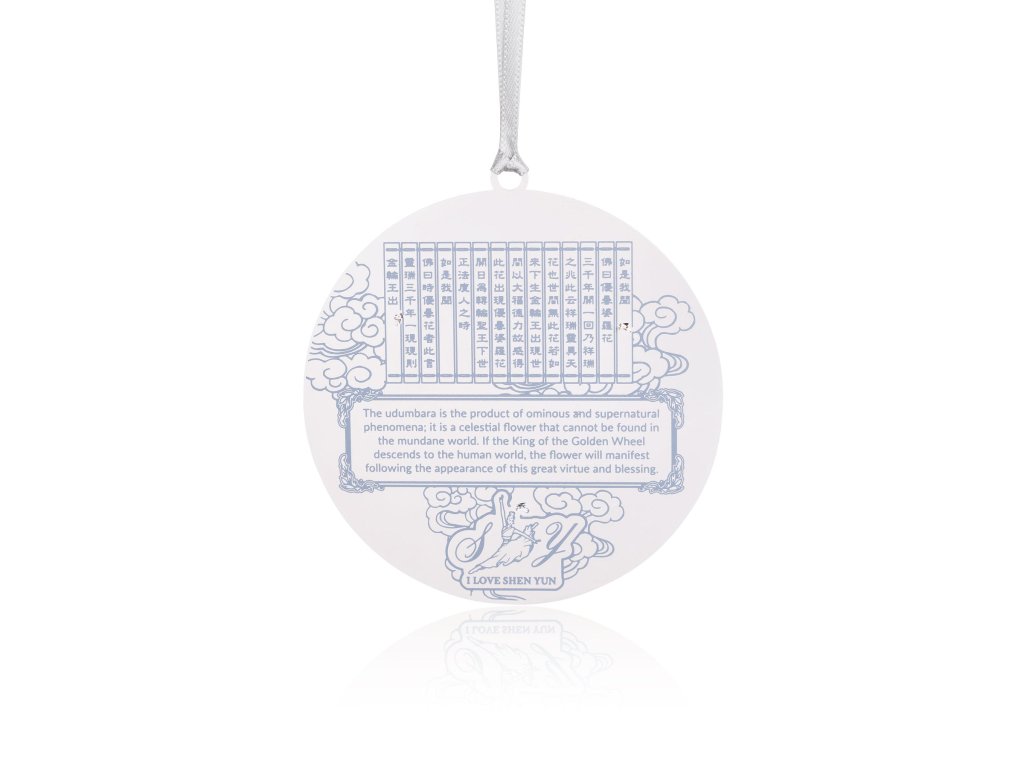 Starověké buddhistické spisy hovoří o květu Udumbara, který rozkvétá jednou za tři tisíce let, aby zvěstoval příchod ‚Svatého krále, jenž otáčí kolem‘ a nabízí spásu všem vnímajícím bytostem. Kéž tato ozdoba, jež oživuje tyto blahonosné květy v podmanivém designu inspirovaném představením Shen Yun ‚Mystická Udumbara‘, dodá vašim svátečním chvílím nebeský nádech zázraků.