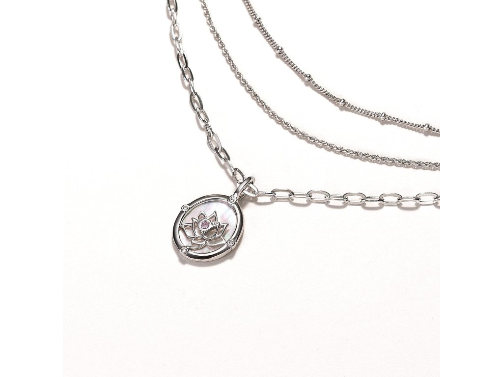 Rozkvět v kalných, stojatých vodách by neměl být možný. Lotosu se však navzdory nepřízni osudu daří a stává se uctívaným symbolem čistoty a půvabu. Zde je vyveden v duhové perleti, která prý svému nositeli přináší klid a vnitřní sílu.